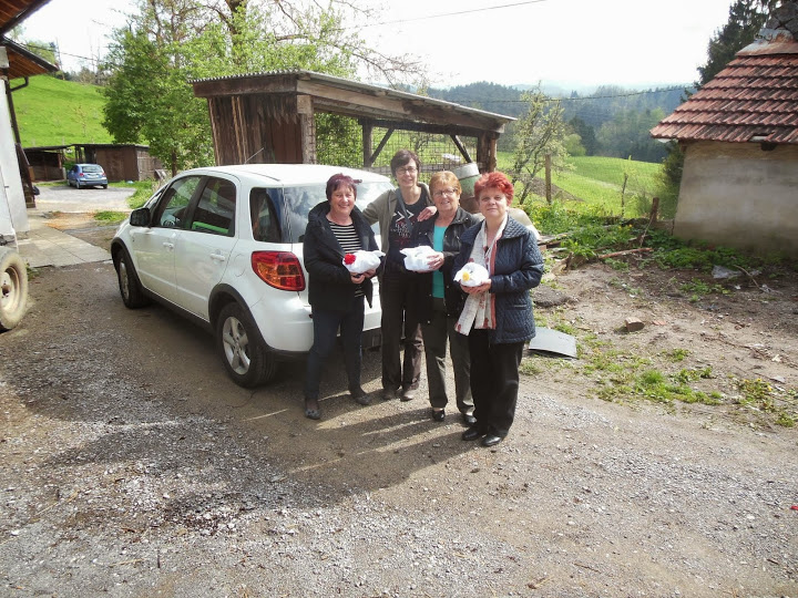 Tudi tako čemerne dni, kot so bili letošnji prvomajski prazniki izkoristimo članice Turističnega društva Pudgura za kaj koristnega. Tako nas je nekaj članic » sekcije ročnih del«, ki smo pozimi pridno pletle copatke obiskalo tri v letošnjem letu rojene Pudgurce. Pot nas je najprej zanesla v Predjamo, kjer smo obdarile Mitja Premru, nato pa v Bukovje k družini Gerlica in malemu Jaki, ter za konec še k Dolinarjevim pogledat Anjino Marušo.