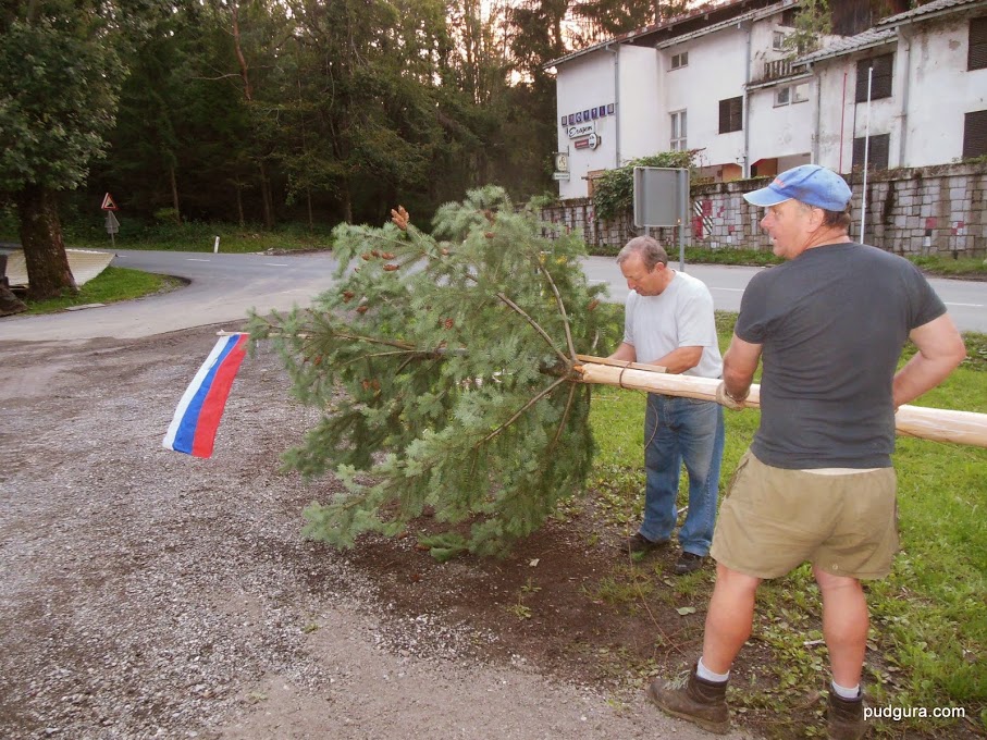 Člani Turističnega društva Pudgura in naši prijatelji se že ves teden trudimo, da bi bila tudi letošnja prireditev Gozdar-kmet nekoč in danes lepa, pestra in zanimiva. Na žalost nam pri tem ves čas nagaja dež, ampak mi se ne damo. Zaradi razmočenega terena smo s pomočjo donatorjev s peskom nasuli najbolj prizadet del prizorišča pri kozolcu. Večji del prikaza dela v gozdu nekoč in danes: nalaganje lesa na voz, furanje, varno delo v gozdu po žledu in spretnosti z motorno žago pa bo prikazan v Brdih. Zaradi odvoza sekancev in lesa s kamijoni v zadnjem tednu ob sočasnem dežju je pot v Brda zelo blatna. Gledalci bodo usmerjeni naj hodijo po travi ob poti, bo pa nujno potrebna obutev, ki bo primerna razmeram.