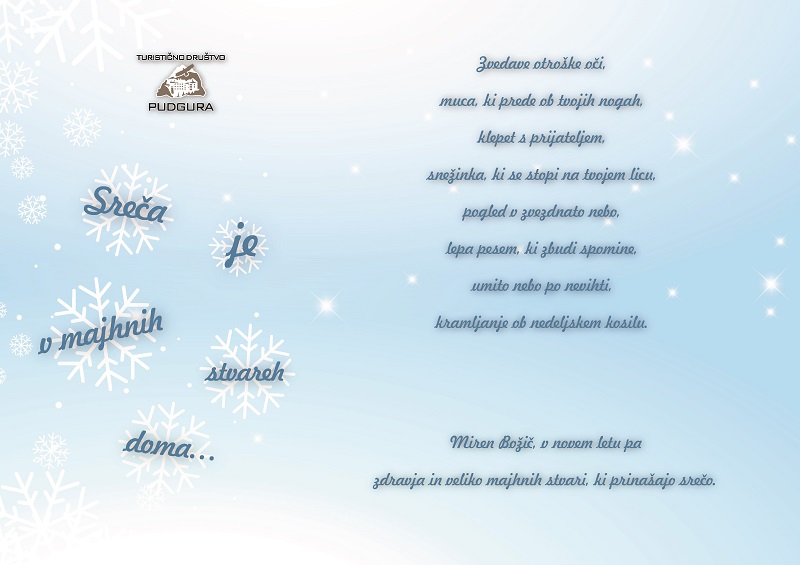 Kot že vrsto let zapored, smo člani TD-Pudgura tudi letos izvedli novoletni pohod na Sv. Lovrenc. Dan je bil sončen, suh in dokaj topel, več kot ugoden za ljubitelje pohodništva. Tako se je prvega januarja v zgodnjih popoldanskih urah zbralo kar veliko število pohodnikov na parkirišču v Studenem. Po kratkem nagovoru in voščilu predsednika TD Pudgura Evgena Požarja smo krenili na pot. Veliko pohval in vzpodbud je bil deležen petletni Žiga iz Gorenj, ki je kot najmlajši pohodnik sam osvojil vrh.