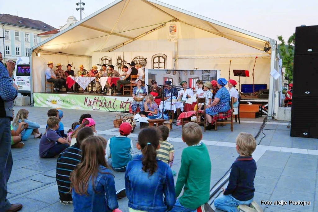 Vse kaže, da so za Pudgurce četrtki dobri dnevi. Tako so že pred časom pod kozolcem Toplarjem pri Belskem »stekla« prijetna četrtkova srečanja. Tudi prvi julijski četrtek sredi Postojne je bil povsem v znamenju Podgure. Na postojnskem poletnem festivalu pred hotelom Kras, smo Pudgurci postavili kar gostilno pri kozolcu.