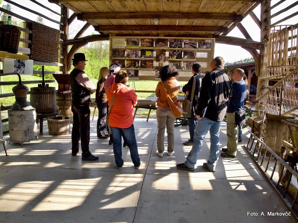 V četrtek 8.maja se je spet nekaj dogajalo pod našim kozolcem. V lepem številu so se vabilu našega turističnega društva odzvali lokalni turistični vodniki »Zelenega krasa«. Marsikdo od njih je priznal, da je že slišal za našo zbirko starih predmetov, kaj več pa do zdaj niso vedeli. V imenu turističnega društva »Pudgura« jih je pozdravil predsednik Evgen Požar, ki je pozneje zbranim predstavil še etnološko zbirko.